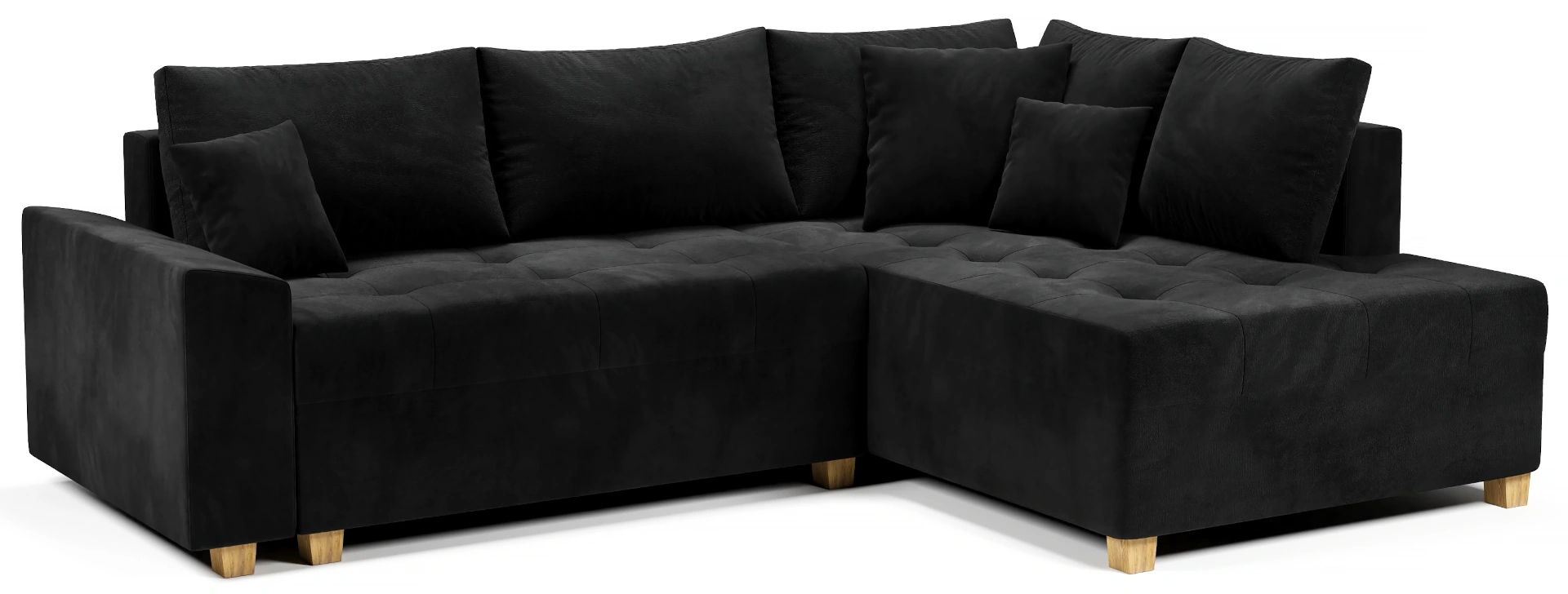 Kanapa Narożna Narożnik z Funkcją Spania z Pojemnikiem Aston Czarny Prawy