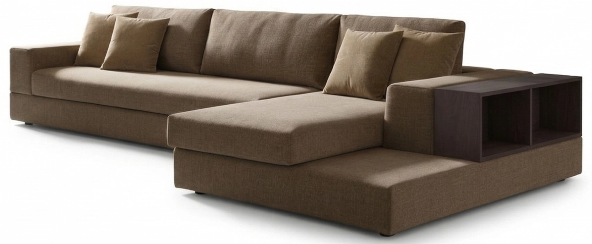 Nowoczesny Narożnik z Funkcją Spania i Barkiem Półką do Salonu Aura Ciemny Beż Prawy