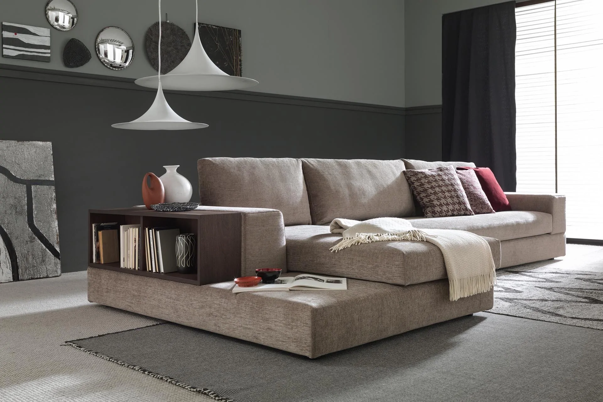 - Wbudowany półko-barek - zyskujesz unikalny design i dodatkową przestrzeń na podręczne przedmioty bezpośrednio w boku narożnika.